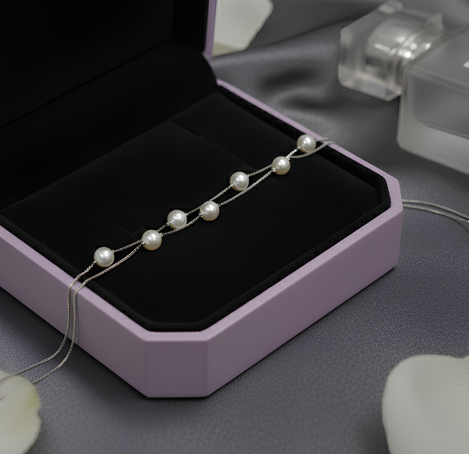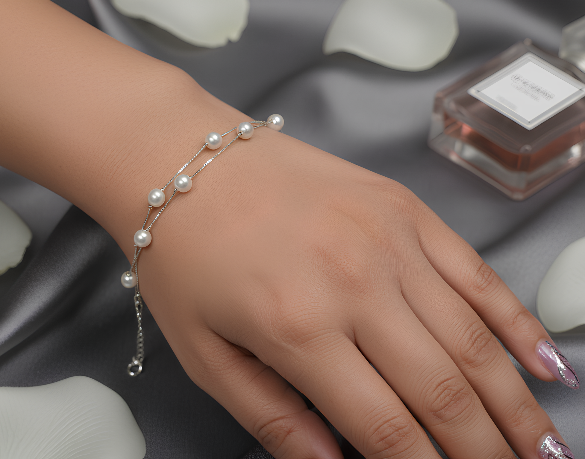 Pearls have long symbolized purity and sophistication, and the Celeste bracelet takes that symbolism into a minimalist yet luxurious direction. The dual strands provide just the right amount of movement, allowing the pearls to catch the light beautifully with every gesture. Whether you’re dressing up for a brunch date, a wedding function, or just adding a touch of refinement to your office look, this bracelet transitions seamlessly.