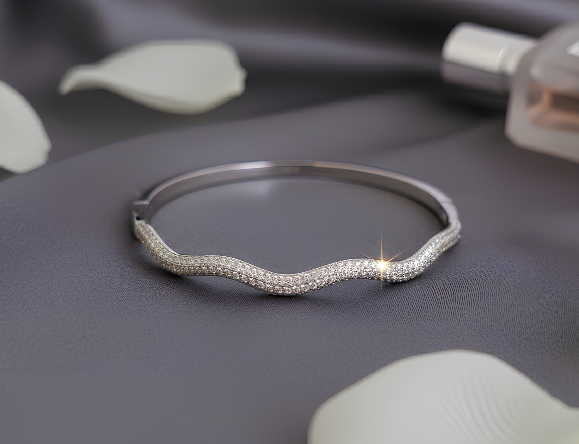 The Onda Bangle Bracelet (Onda = “Wave” in Italian) brings the poetry of the ocean to your wrist. Its single wavy curve creates a soft movement that feels both natural and artistic.