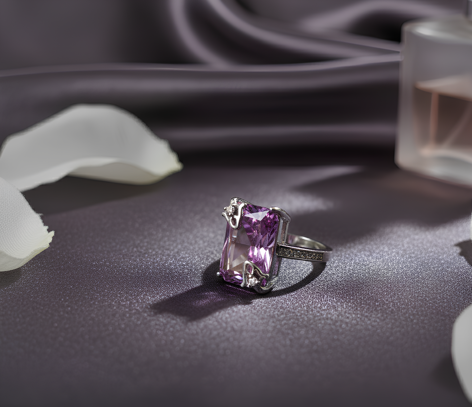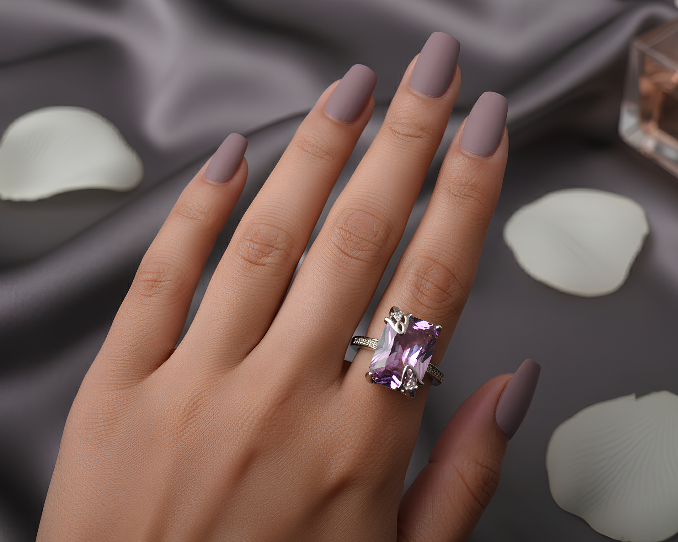 This striking design features a large rectangular-cut purple solitaire π that exudes luxury and confidence. The sleek 925 sterling silver band provides the perfect frame for the stone, creating a sophisticated look thatβs both timeless and powerful. Ideal for women who love bold, signature jewelry pieces, this ring is made to turn heads.