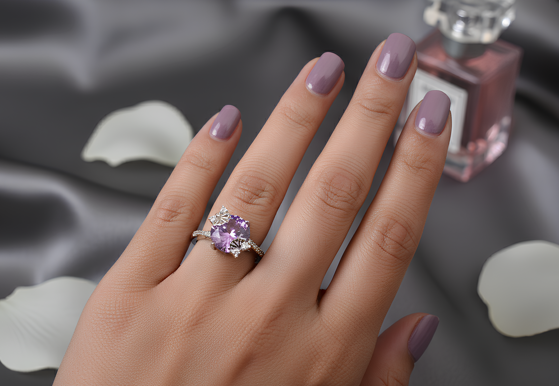 Style Tip: Pair the Viola Snow Ring with a soft mauve or lavender outfit to highlight its purple tones. It also looks stunning when stacked with minimal silver bands for a chic, layered look.